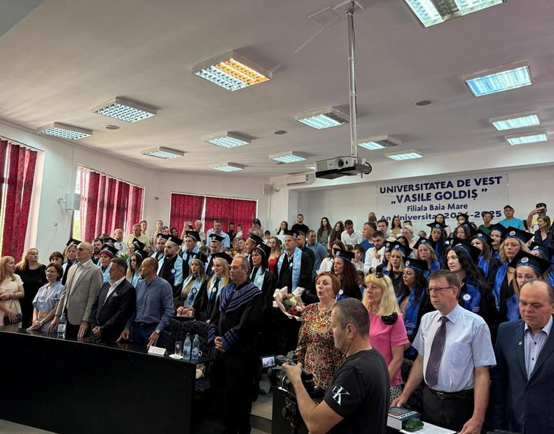 Vineri, 28 iunie, a avut loc festivitatea de absolvire a studenților de la Universitatea de Vest „Vasile Goldiș” din Arad – Extensia Baia Mare, coordonată de lector univ. dr. Ioan Liviu Tăut, director Filială, de la specializarea Contabilitate și Informatică de Gestiune, coordonați de d-na conf. univ. dr. Anamaria Tohătan, responsabil pentru Specializările de la Științe Economice și specializarea Pedagogia învățământului primar și preșcolar, coordonați de d-na conf. univ. dr. Delia Mariana Ardelean, responsabil pentru Specializarea Pedagogie.