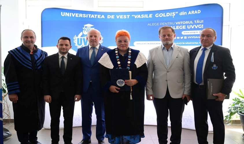Din partea conducerii universității au participat d-na prof. univ. dr. habil. Coralia Adina Cotoraci – Rectorul Universității de Vest „Vasile Goldiș” din Arad și conf. univ. dr. Bențe Cristian – Prorector pentru strategia academică și relația cu studenții.